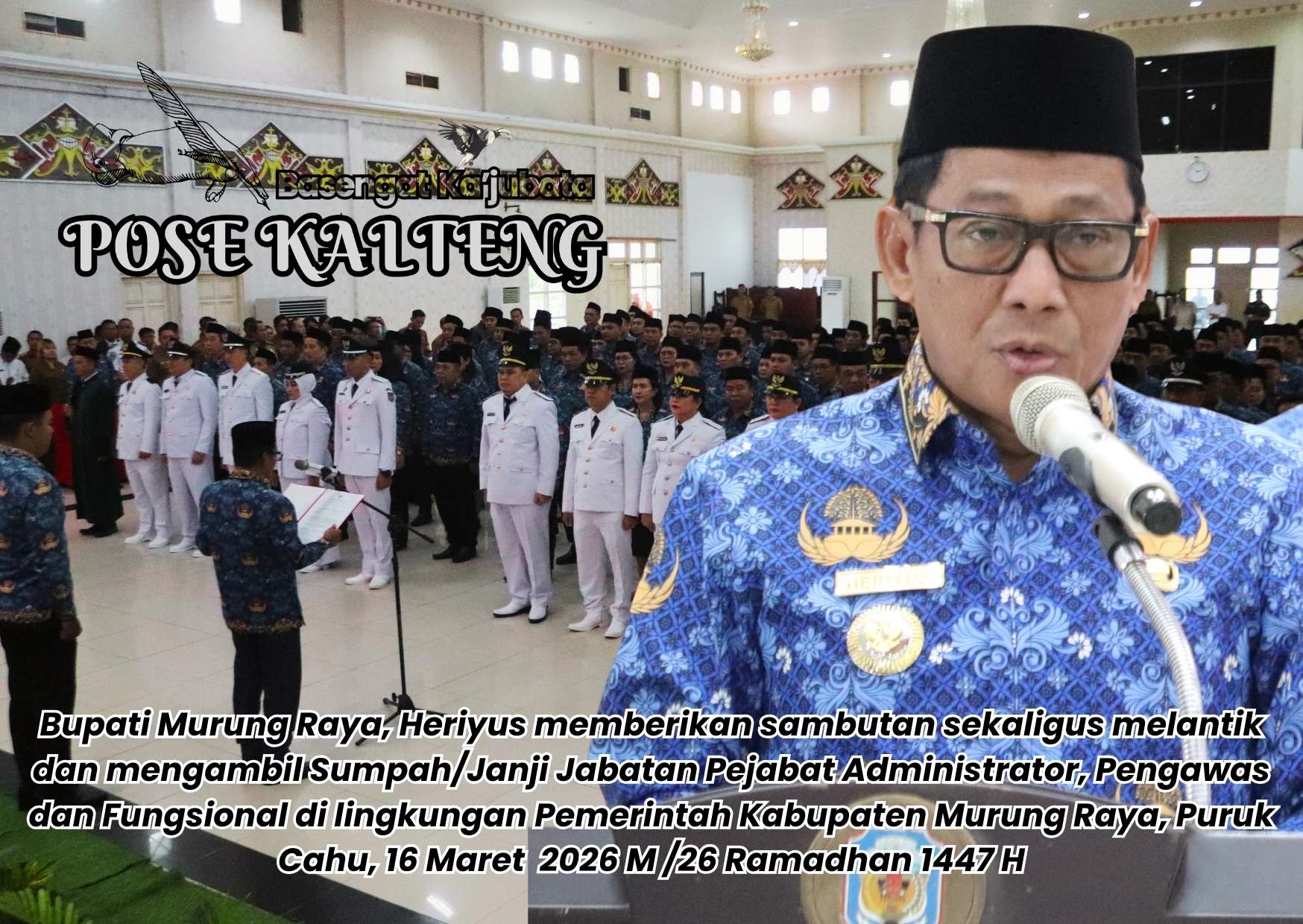 POSE KALTENG, Puruk Cahu – Bupati Murung Raya (Mura), Heriyus secara resmi melantik & mengambil Sumpah/Janji Jabatan Pejabat Administrator, Pengawas ...