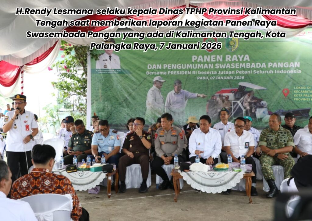POSE KALTENG, Palangka Raya – Pemerintah Provinsi (Pemprov) Kalimantan Tengah (Kalteng) turut hadir pada kegiatan Panen Raya dan pengumuman Swasembada Pangan Nasional yang digelar oleh Kementerian Pertanian Republik Indonesia bersama Presiden RI, Prabowo Subianto, secara virtual pada Rabu 7 Januari 2026.