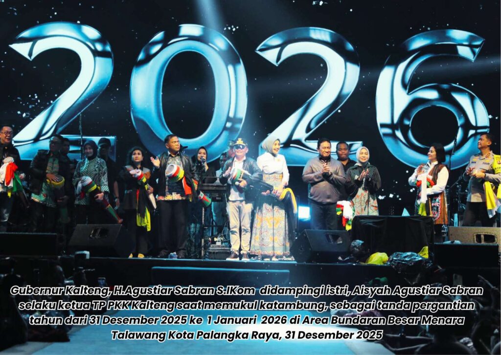 Gubernur Kalteng, H. Agustiar Sabran dan Wakil Gubernur Kalteng, H. Edy Pratowo serta Unsur Forkopimda Kalteng bersama-sama memukul Katambung menandai berakhirnya Tahun 2025 dan Dimulainya Tahun Baru 2026.