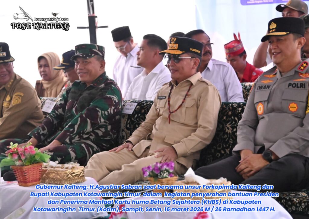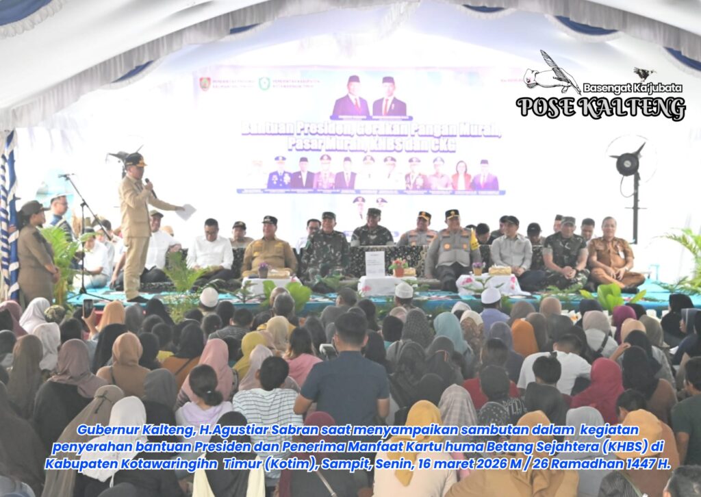 POSE KALTENG, Sampit – Pemerintah Provinsi (pemprov) Kalimantan Tengah (Kalteng) kembali menyerahkan Bantuan Presiden (Banpres) dan menjalankan dengan maskimal program Kartu Huma Betang Sejahtera (KHBS) yang ditujukan bagi masyarakat penerima manfaat menjelang Hari Raya Idul Fitri 1447 H /2026 M dan Hari Raya Nyepi, di kawasan Pasar Sampit, Senin, 16 Maret 2026 M / 26 Ramadhan 1447 H.