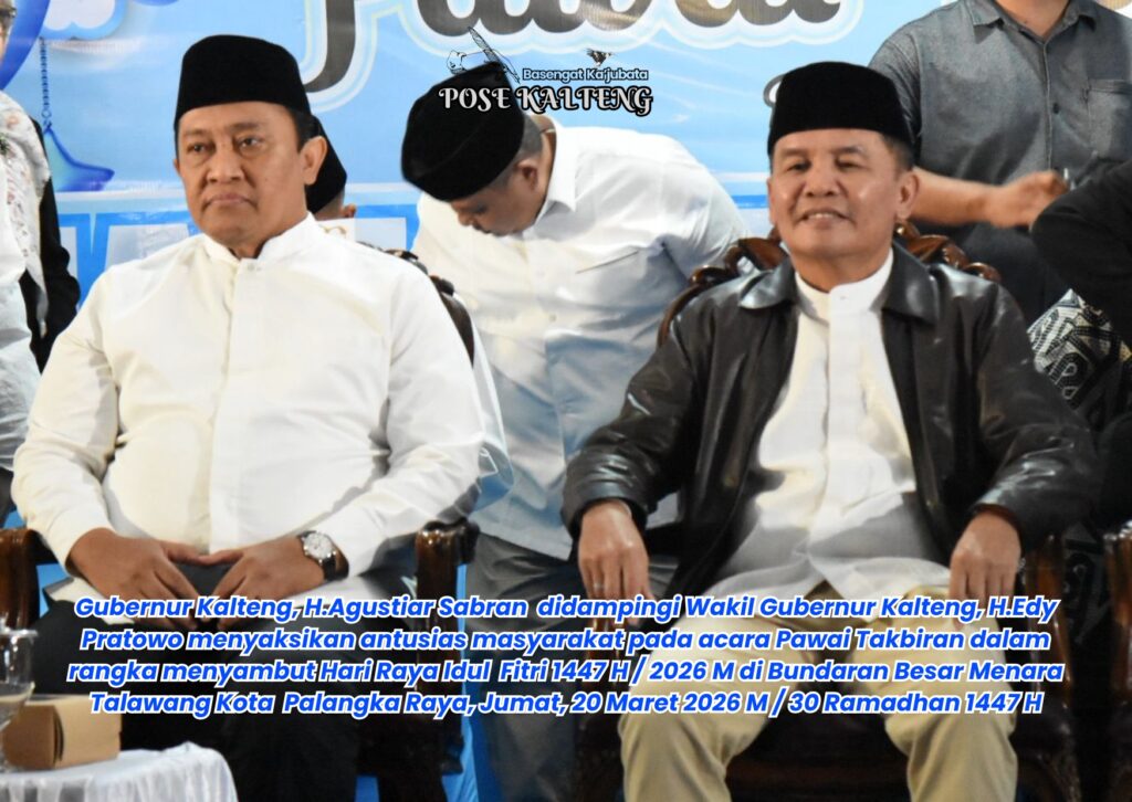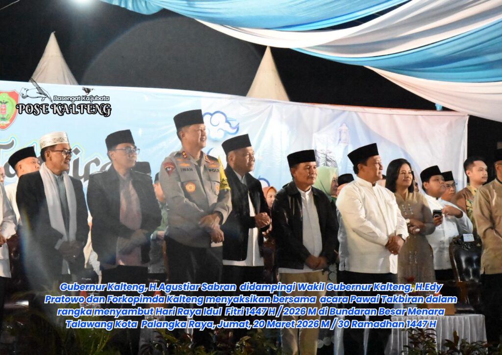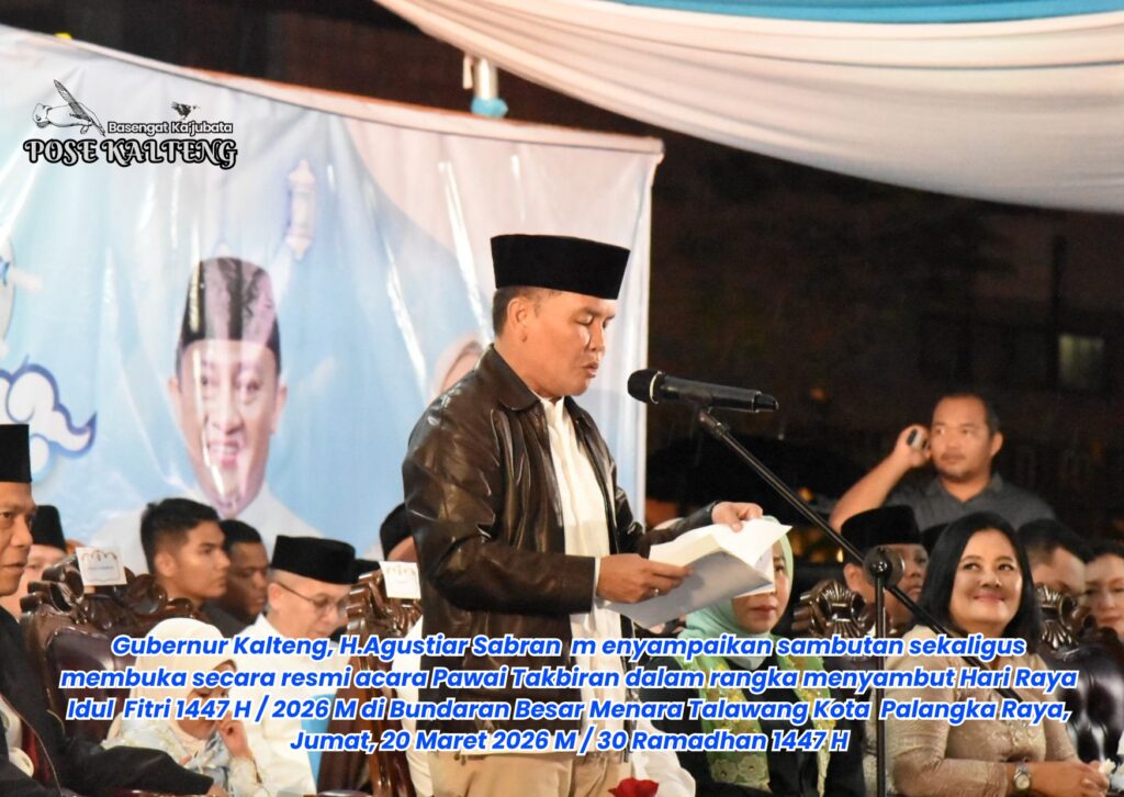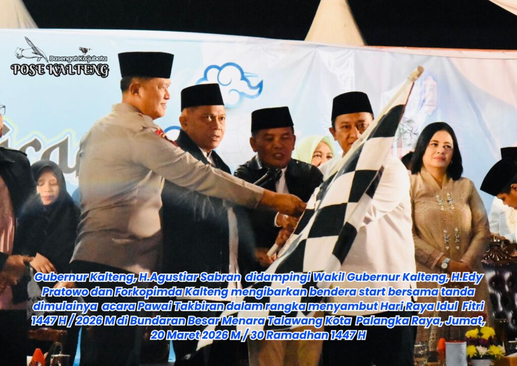 POSE KALTENG, Palangka Raya – Gubernur Kalimantan Tengah (Kalteng), H.Agustiar Sabran secara resmi membuka acara Pawai Takbiran dalam rangka menyambut Hari Raya Idul Fitri 1447 H / 2026 M di Bundaran Besar Menara Talawang Kota Palangka Raya, Jumat, 20 Maret 2026 M / 30 Ramadhan 1447 H.