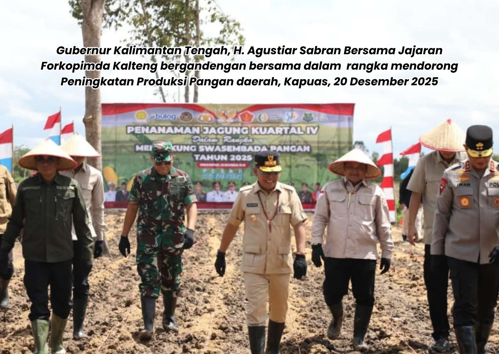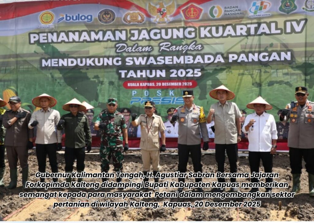 POSE KALTENG, Kapuas – Gubernur Kalimantan Tengah (Kalteng), H. Agustiar Sabran, menegaskan komitmen Pemerintah Provinsi Kalimantan Tengah dalam memperkuat ketahanan pangan melalui kegiatan penanaman bibit jagung Kuartal IV yang dilaksanakan di Desa Sei Asam, Kecamatan Kapuas Hilir, Kabupaten Kapuas 20 Desember 2025.
