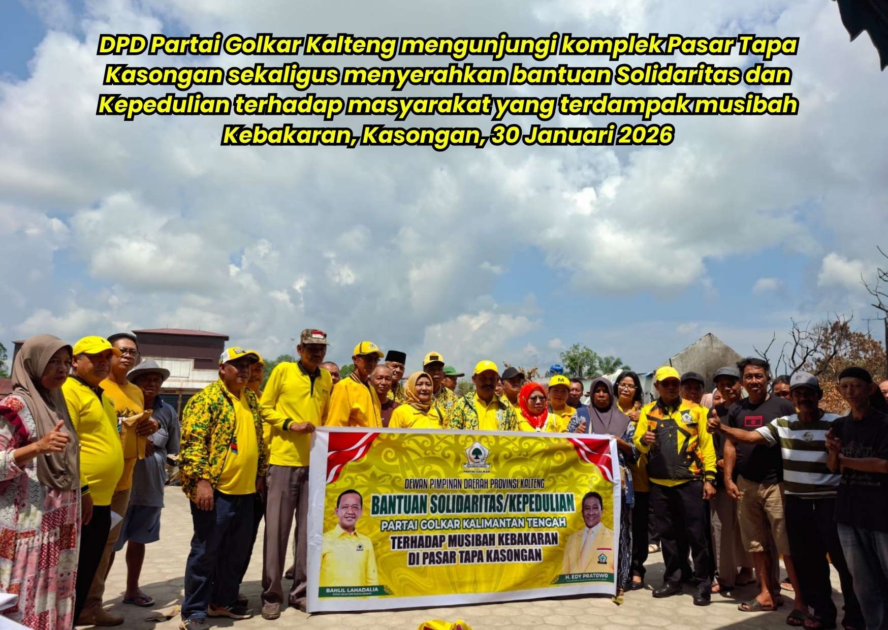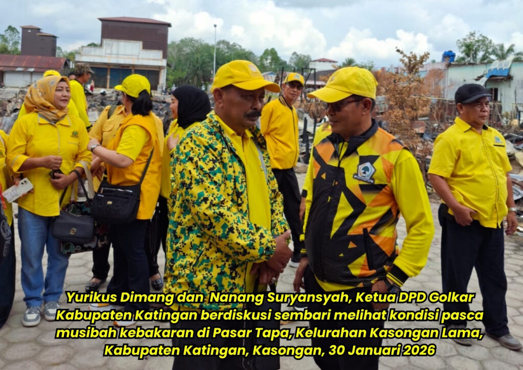 POSE KALTENG, Kasongan – Sejumlah kader Dewan Pimpinan Daerah (DPD) Partai Golongan Karya (Golkar) Provinsi Kalimantan Tengah (Kalteng) kunjungi lokasi pasar Tapa Kasongan yang mengalami musibah kebakaran besar pada Minggu malam 25 Januari 2026 pada pukul 21.00 WIB.