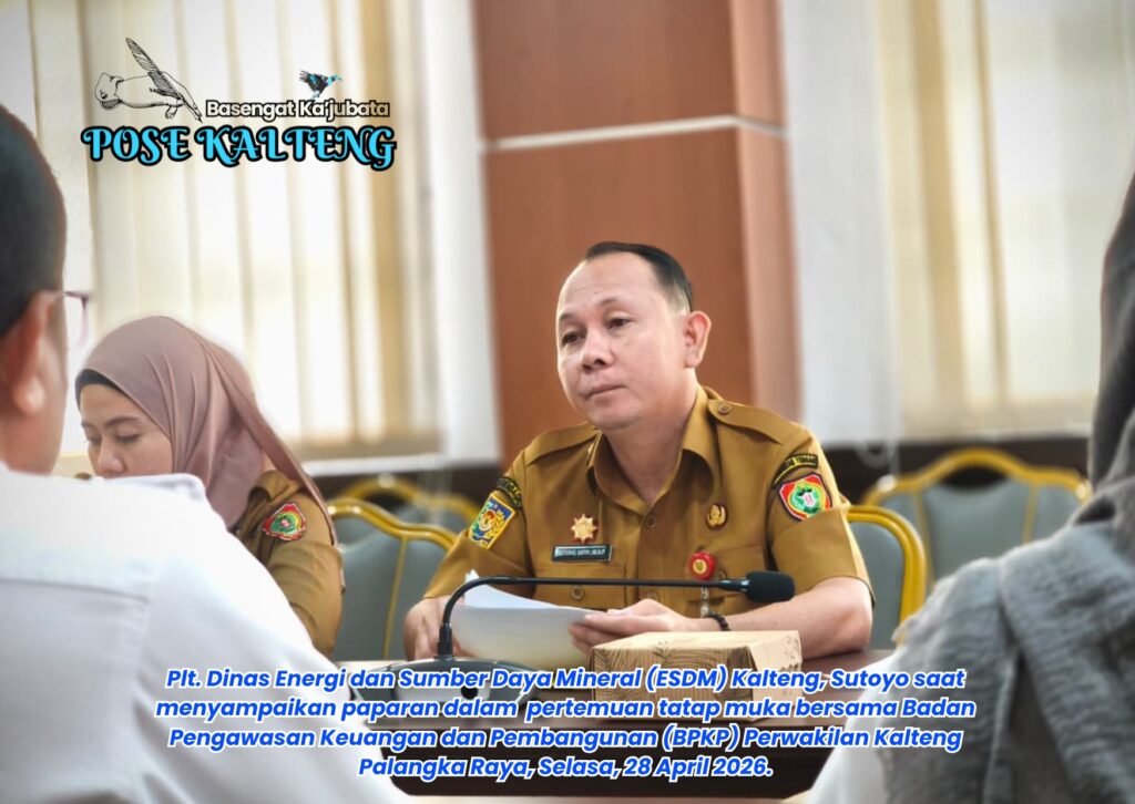POSE KALTENG, Palangka Raya – Upaya meningkatkan Pendapatan Asli Daerah (PAD) terus didorong Dinas Energi dan Sumber Daya Mineral (ESDM) Provinsi Kalimantan Tengah melalui penguatan tata kelola sektor strategis. Salah satunya dilakukan lewat pertemuan bersama Badan Pengawasan Keuangan dan Pembangunan (BPKP) Perwakilan Kalteng, di kantor ESDM Kalteng, Jalan Cilik Riwut Km.3 Palangka Raya, Selasa, 28 April 2026.