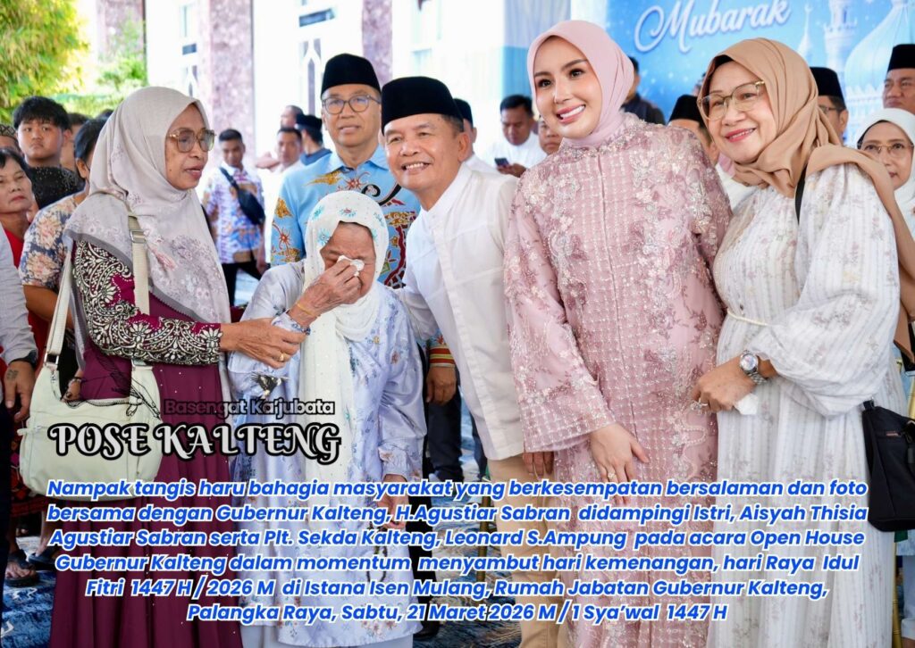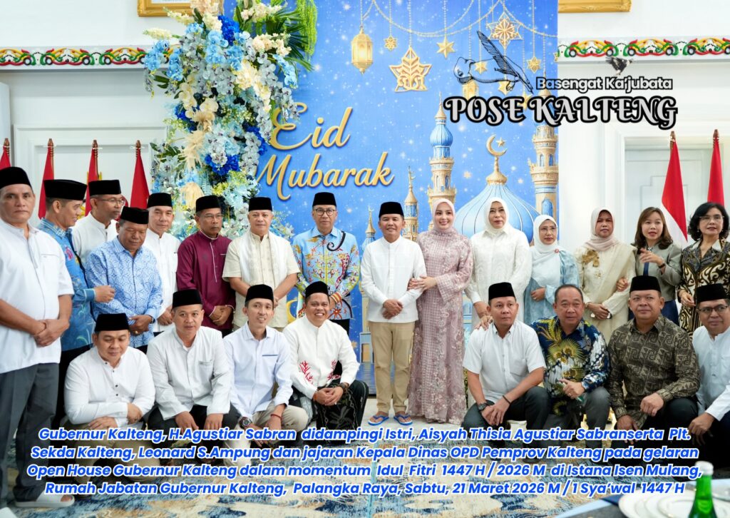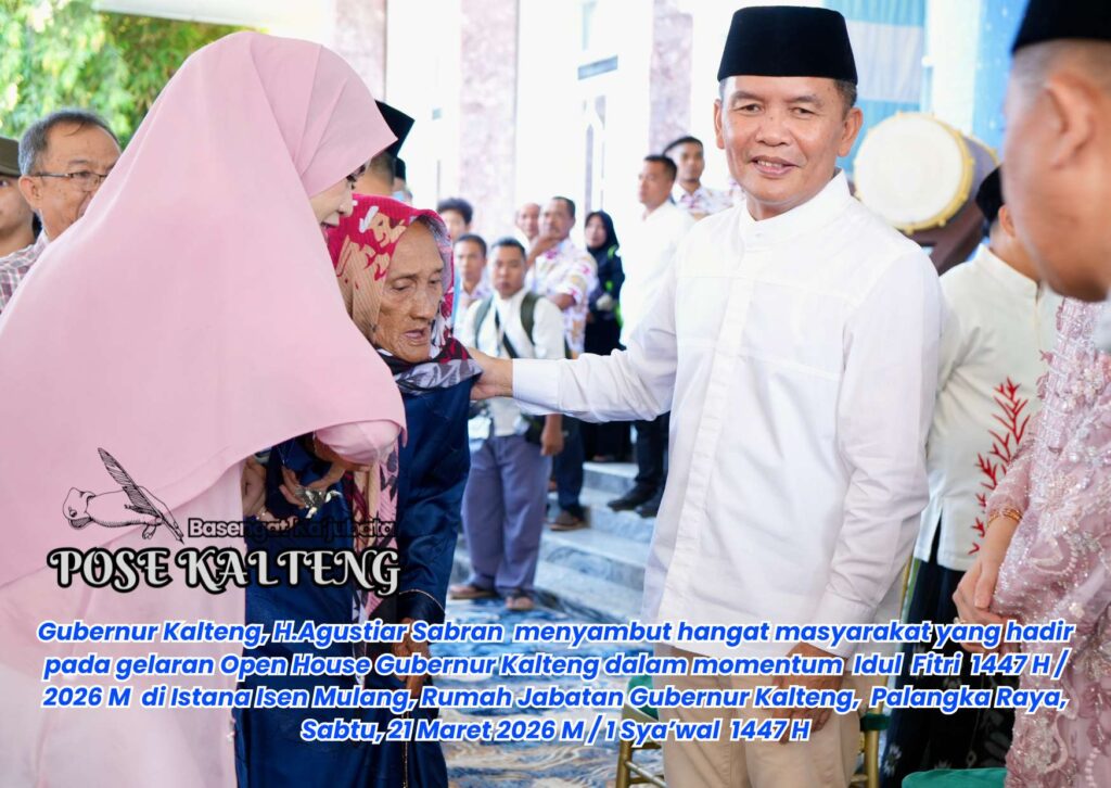 POSE KALTENG, Palangka Raya – Gubernur Kalimantan Tengah (Kalteng), H.Agustiar Sabran menggelar Open House di rumah jabatan Istana Isen Mulang Palanghka Raya di momen Perayaan Idul Fitri 1447 H / 2026 M, Palangka Raya, Sabtu, 21 Maret 2026 M / 1 Sya’wal 1447 H.