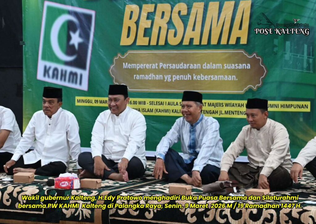 POSE KALTENG, Palangka Raya – Wakil Gubernur (Wagub), Kalimantan Tengah (Kalteng), H. Edy Pratowo hadir dalam kegiatan Silaturahmi dan Buka Puasa Bersama Majelis Wilayah Korps Alumni Himpunan Mahasiswa Islam (KAHMI) Kalteng di Aula Sekretariat Majelis Wilayah KAHMI Kalteng, Senin, 9 Maret 2026 M / 19 Ramadhan 1447 H.