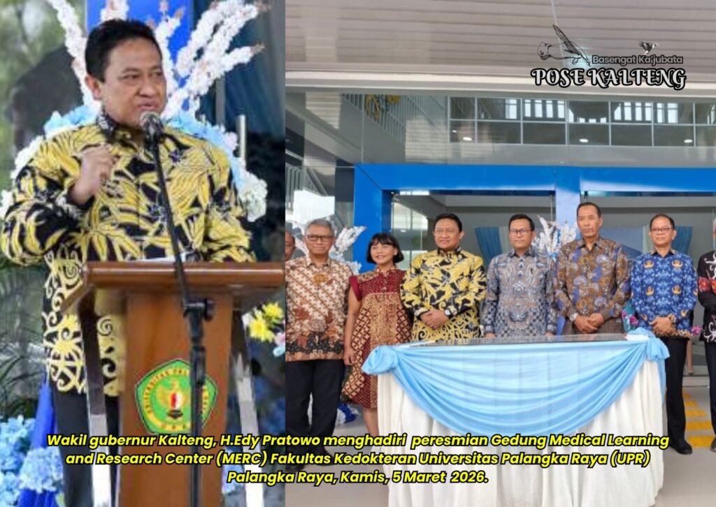 POSE KALTENG, Palangka Raya – Wakil Gubernur Kalimantan Tengah (Wagub Kalteng), H. Edy Pratowo menghadiri peresmian Gedung Medical Learning and Research Center (MERC) Fakultas Kedokteran Universitas Palangka Raya (UPR), Kamis, 5 Maret 2026.