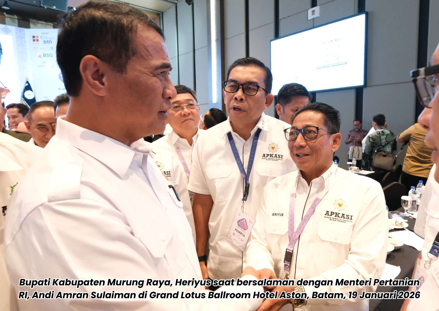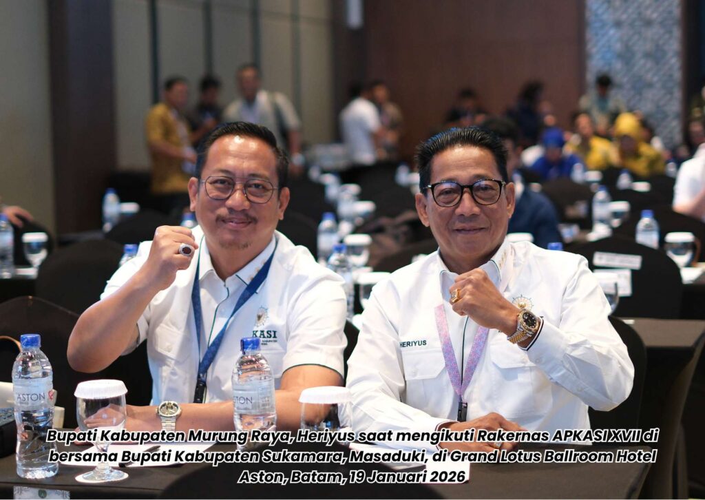 POSE KALTENG, Batam – Bupati Murung Raya (Mura), Heriyus menghadiri langsung Rapat Kerja Nasional (Rakernas) Asosiasi Pemerintah Kabupaten seluruh Indonesia (APKASI) ke-XVII. Acara yang mempertemukan para Kepala Daerah se-Indonesia ini digelar di Grand Lotus Ballroom Hotel Aston Batam, Provinsi Kepulauan Riau, Senin 19 Januari 2026. Turut hadir sejumlah Kepala Perangkat Daerah terkait lingkup Pemkab Mura.