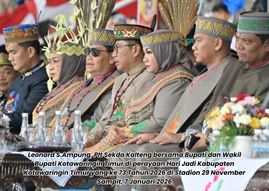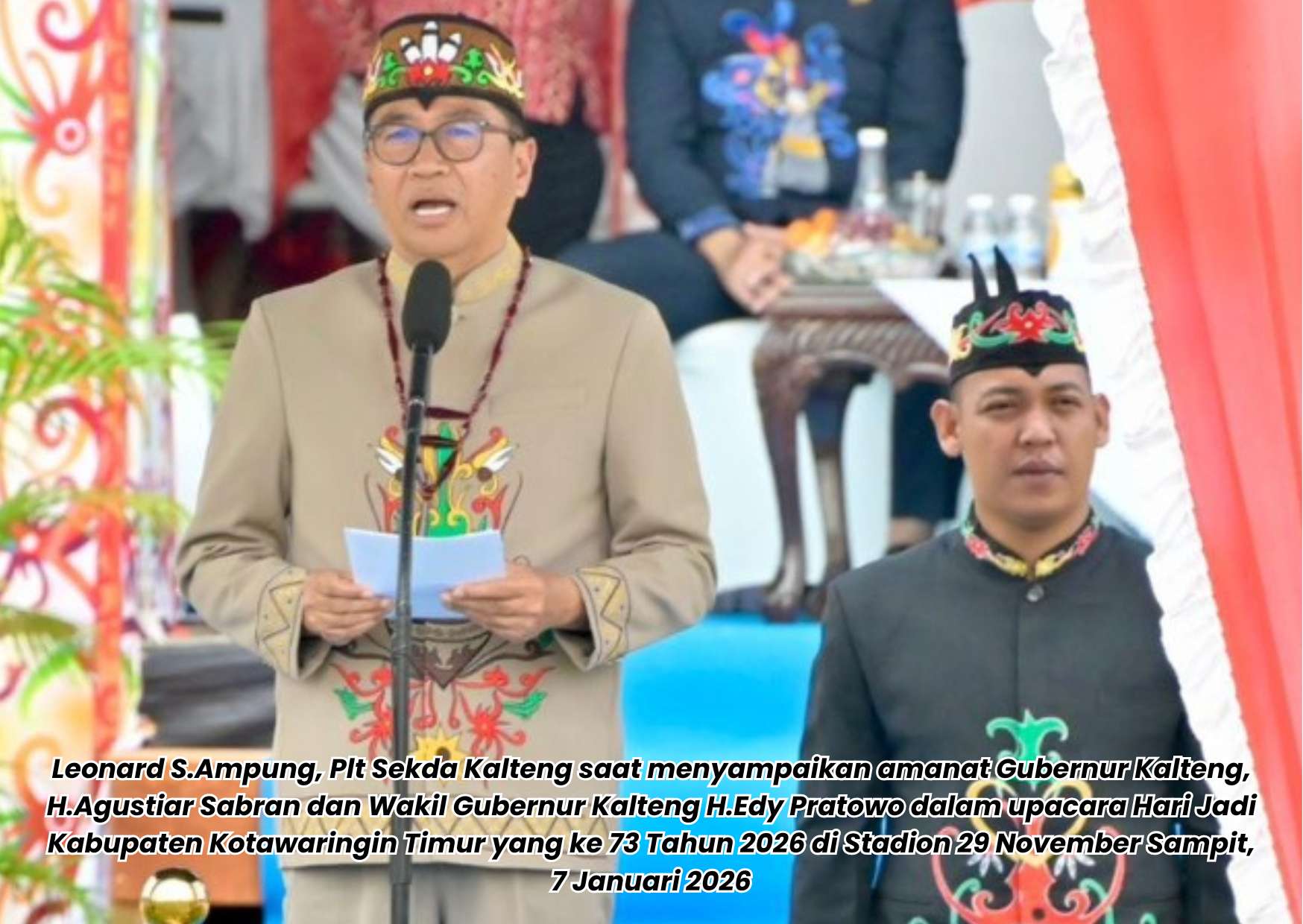 POSE KALTENG, Palangka Raya – Sekretaris Daerah (Sekda) Kalteng Leonard S. Ampung,Pimpin Upacara peringatan HUT Kabupaten Kotawaringin Timur (Kotim) yang berlangsung di stadion 29 November Sampit, Rabu 7 Januari 2026.