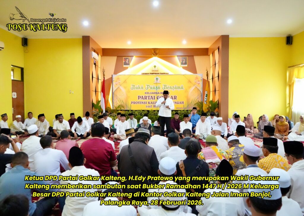 Suasana Ramadhan 1447 H / 2026 M kali ini diharapkan dapat menjadi energi positif dan kekuatan serta semangat para pengurus dan kader golkar dalam menjalankan tugas serta tanggung jawab politik, baik wakil rakyat perwakilan Golkar yang ada di seluruh DPRD Kabupaten/Kota hingga tingkat DPRD Kalteng”, tegas H.Edy Pratowo.