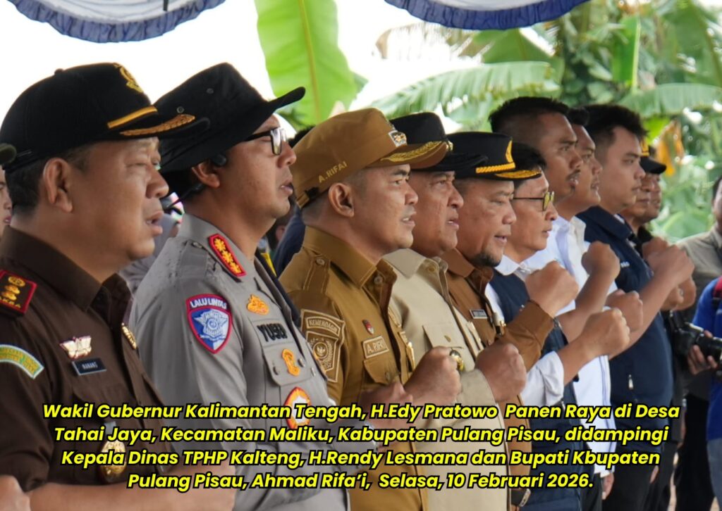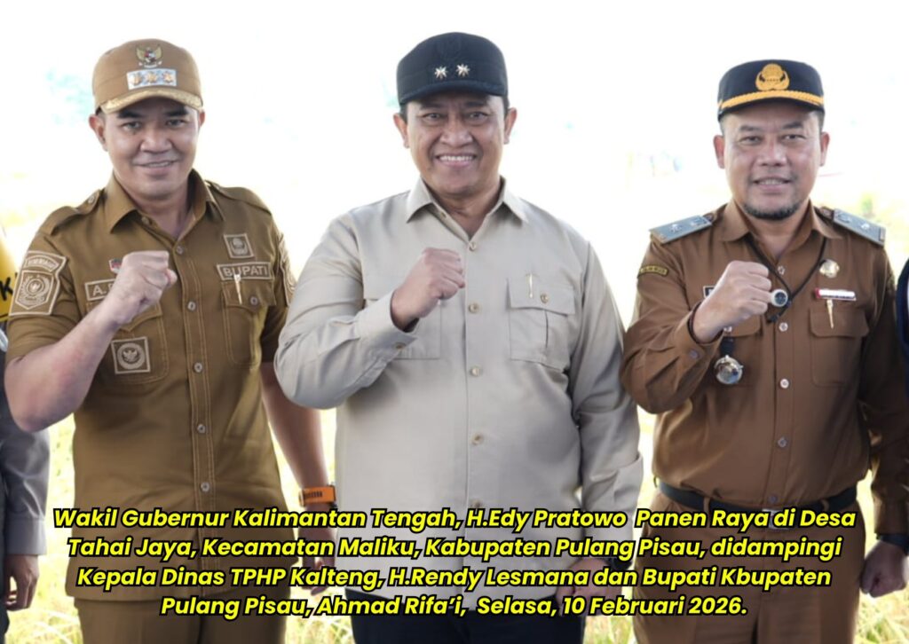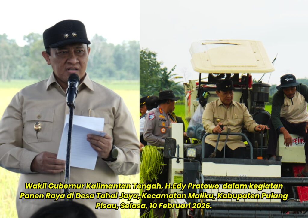 POSE KALTENG, Pulang Pisau – Gubernur Kalimantan Tengah (Kalteng), H.Agustiar Sabran yang diwakili oleh Wakil Gubernur Kalteng, H.Edy Pratowo menghadiri kegiatan Panen Raya di Desa Tahai Jaya, Kecamatan Maliku, Kabupaten Pulang Pisau, Selasa, 10 Februari 2026.