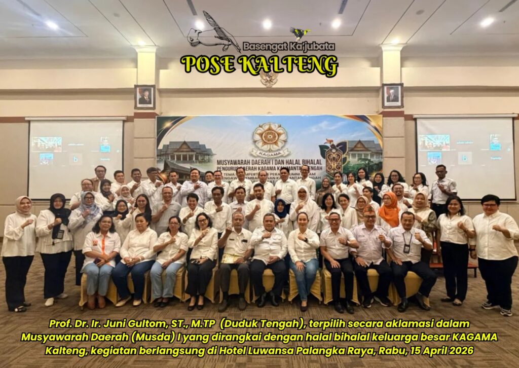 POSE KALTENG, Palangka Raya – Pengurus daerah (Pengda) Keluarga Alumni Universitas Gadjah Mada (KAGAMA) Provinsi Kalimantan Tengah menyelenggarakan Musyawarah Daerah (Musda) I dan halal bihalal serta mengusung tema, “Mempertegas Peran Alumni Dalam Mengawal Pembangunan Kalimantan Tengah Menuju Masyarakat Adil dan Makmur”, kegiatan tersebut diselenggarakan di Luwansa Hotel, Jalan G.Obos, Palangka Raya, Rabu, 15 April 2026.