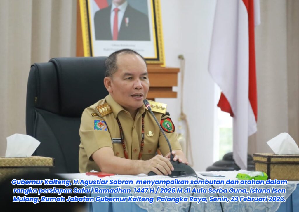 “Safari Ramadhan 1447 H/ 2026 M Insya Allah akan dimulai, saya sendiri akan ke Kabupaten Kobar, Seruyan, Katingan sampai Kota Palangka Raya. Pada Safari Ramadhan ini juga akan digelar pasar murah dan pemeriksaan kesehatan”, tutur Gubernur di Istana Isen Mulang pada Senin, 23 Februari 2026.
