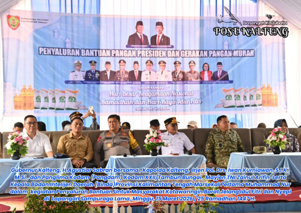 POSE KALTENG, Pangkalan Bun – Pemerintah Provinsi (Pemprov) Kalimantan Tengah (Kalteng) gencar menyalurkan sejumlah bantuan bagi masyarakat di 14 Kabupaten/Kota se-Kalteng menjelang Hari Raya Idul Fitri dan Nyepi, melalui penyaluran Bantuan Pangan Presiden periode Februari-Maret 2026, Pasar Murah untuk masyarakat, Gerakan Pangan Murah, dan Bantuan Tunai Kartu Huma Betang Sejahtera (KHBS) program utama Gubernur Kalteng, H,Agustiar Sabran dan Wakil gubernur Kalteng, H.Edy Pratowo.