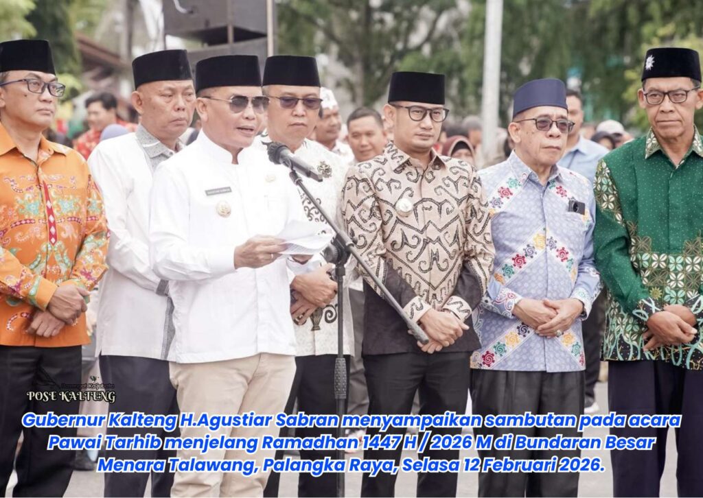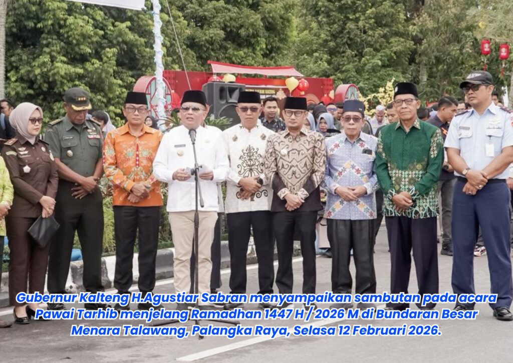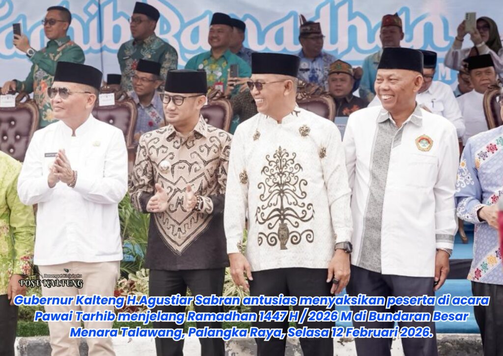 POSE KALTENG, Palangka Raya – Gubernur Kalimantan Tengah (Kalteng) H.Agustiar Sabran secara resmi membuka kegiatan Pawai Tarhib dalam rangka menyambut Bulan Suci Ramadhan 1447 Hijriah / tahun 2026 Masehi di Bundaran Besar Menara Talawang, Kota Palangka Raya, Kamis 12 Februari 2026.