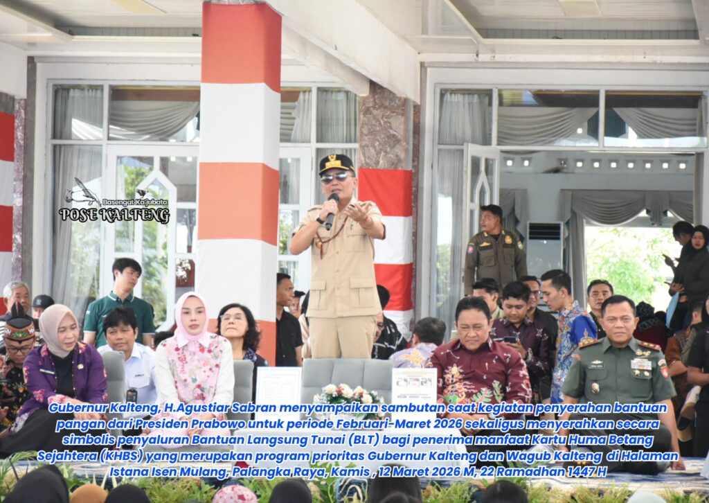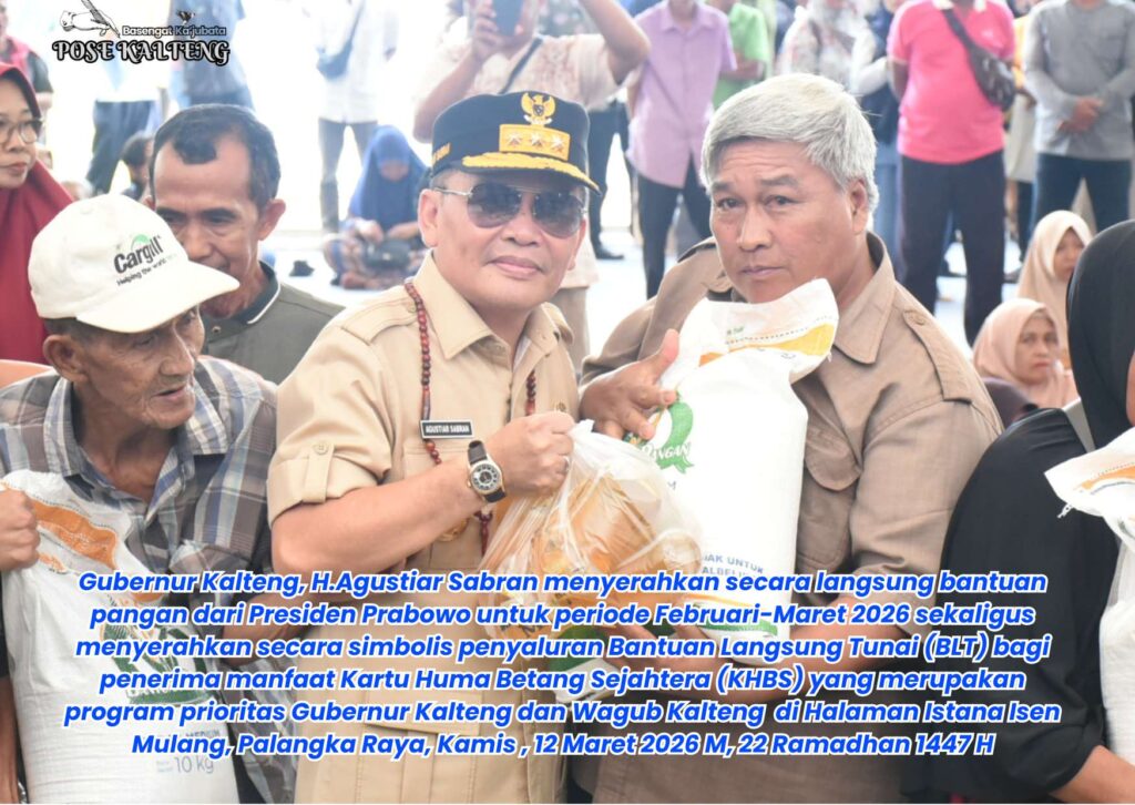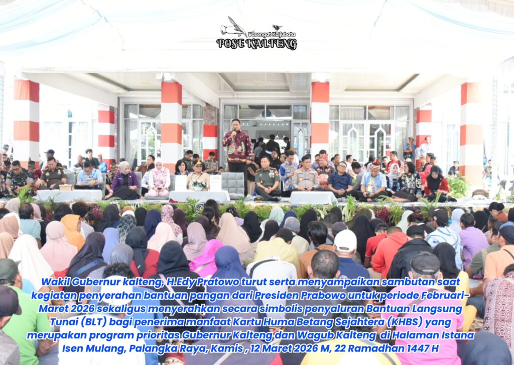 Kehadiran Gubernur dan Wagub bersama Forkopimda membersamai ribuan masyarakat yang hadir guna langsung menyerahkan secara simbolis bantuan pangan dari Presiden Prabowo untuk periode Februari-Maret 2026 sekaligus simbolis penyaluran Bantuan Langsung Tunai (BLT) bagi penerima manfaat Kartu Huma Betang Sejahtera (KHBS) yang merupakan program prioritas Gubernur Kalteng dan Wagub Kalteng.