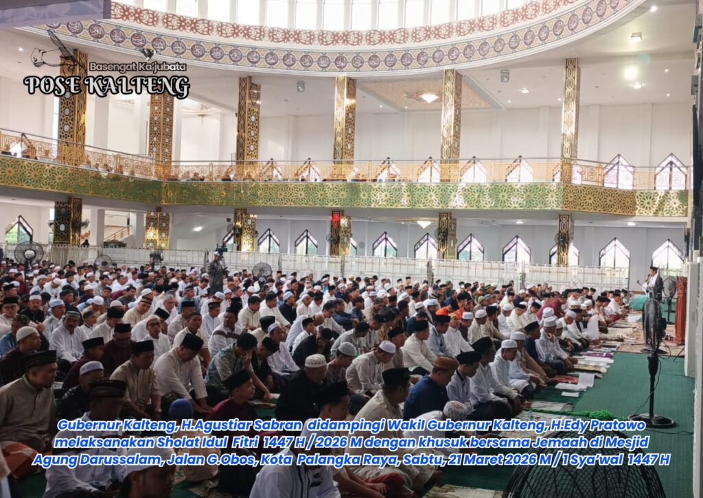 POSE KALTENG, Palangka Raya – Gubernur Kalteng, H.Agustiar Sabran dan Wakil Gubernur Kalteng H.Edy Pratowo bersama keluarga dan masyarakat melaksanakan shalat Idul Fitri 1447 H / 20206 di Masjid Raya Darussalam, Jalan G.Obos, Palangka Raya, 21 Maret 2026 M / 1 Sya’wal 1447 H.