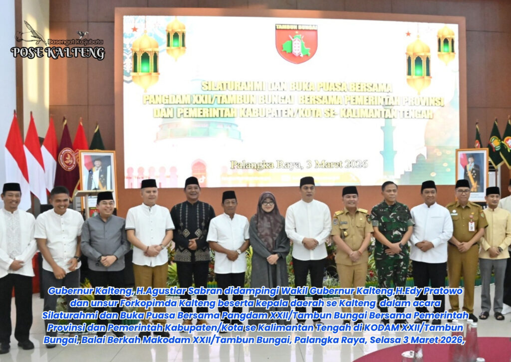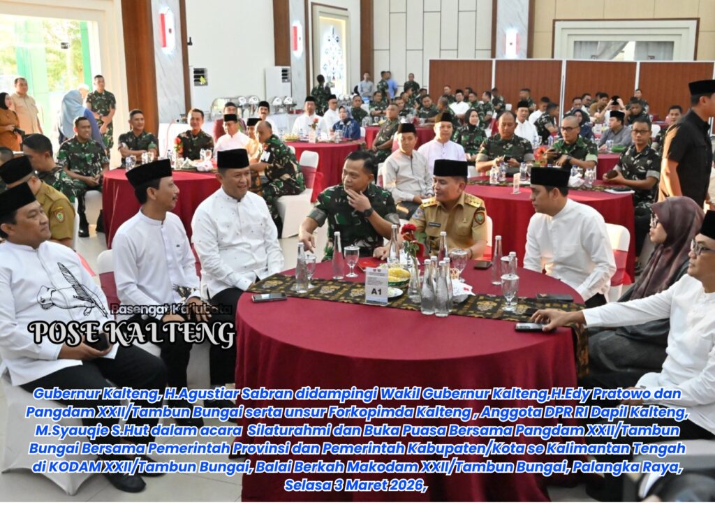 POSE KALTENG, Palangka Raya – Gubernur Kalimantan Tengah (Kalteng) H.Agustiar Sabran, bersama Wakil Gubernur (Wagub) H. Edy Pratowo, menghadiri acara Silaturahmi dan Buka Puasa di Kodam XXII/Tambun Bungai, Balai Berkah Makodam XXII/Tambun Bungai, Selasa 3 Maret 2026.