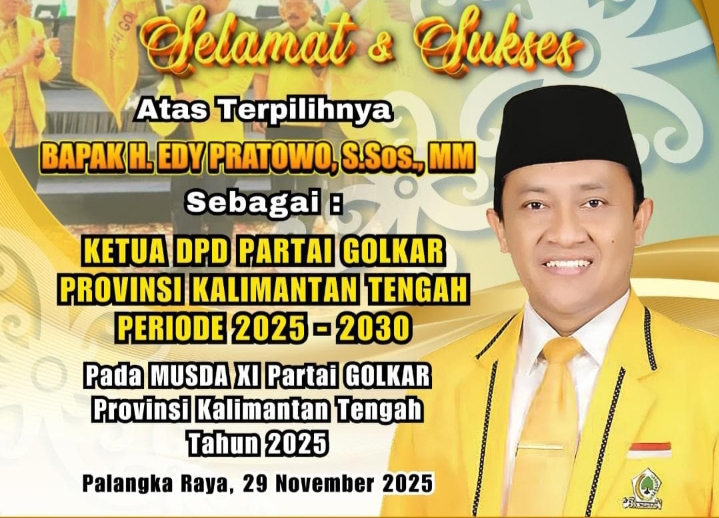 RagamUncategorized Edy Pratowo Terpilih Menjadi Ketua Golkar Kalteng 2025 – 2030 Admin Pose Kalteng Desember 1, 2025 POSE KALTENG, Palangka Raya – Wakil Gubernur Kalimantan Tengah (Kalteng) H. Edy Pratowo S.Sos., MM yang merupakan Kader Golkar Kalteng ...