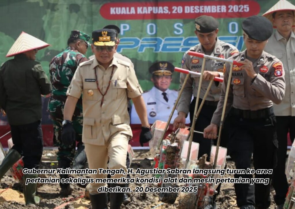 POSE KALTENG, Kapuas – Gubernur Kalimantan Tengah (Kalteng), H. Agustiar Sabran memberikan arahan kepada para petani, dalam rangka penguatan sektor pertanian melalui kegiatan penanaman jagung Kuartal IV di Desa Sei Asam, Kecamatan Kapuas Hilir, Kabupaten Kapuas, 20 Desember 2025.